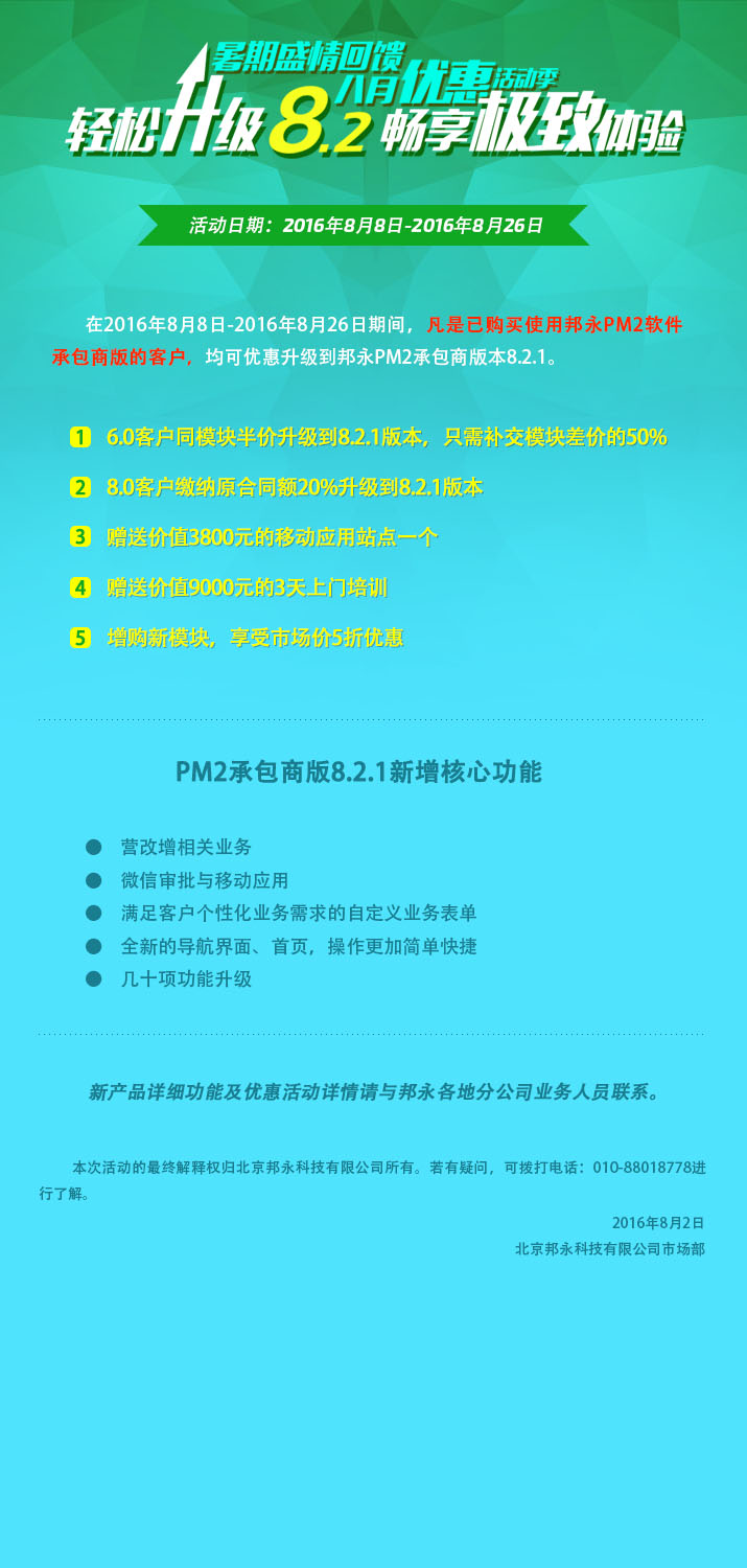 2016暑期盛情回饋 邦永PM2軟件優(yōu)惠活動(dòng)季---輕松升級(jí) 暢享極致體驗(yàn)