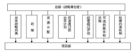 從圖示以及上面的分析不難看出,戰(zhàn)略控制模式基本上屬于適度分權(quán)模式。它鼓勵(lì)部門根據(jù)企業(yè)戰(zhàn)略自主制定業(yè)務(wù)計(jì)劃,自主調(diào)配部門內(nèi)各種資源,確保項(xiàng)目部經(jīng)理職責(zé)到位,充分激發(fā)出項(xiàng)目成員的積極性、主動(dòng)性和創(chuàng)造性。
