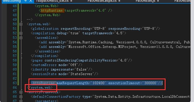 <httpRuntime maxRequestLength="102400" executionTimeout="300000"/>