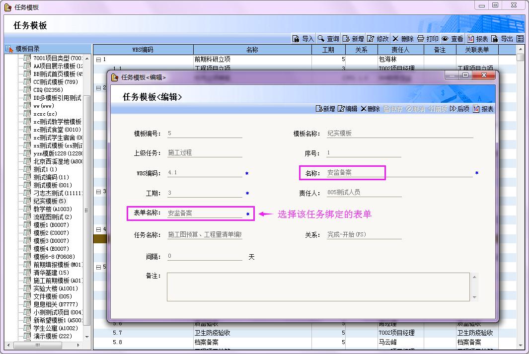 A. 任務(wù)模板菜單用于創(chuàng)建項目任務(wù),創(chuàng)建后,同類型項目都可以引用這些任務(wù),不需要再重新創(chuàng)建任務(wù);創(chuàng)建任務(wù)的同時,將任務(wù)和表單綁定,填報任務(wù)時,就會穿透到對應的表單菜單填報單據(jù);
