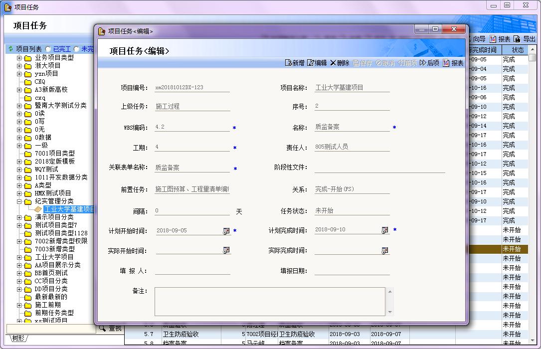 任務(wù)填報后,會反填到項目任務(wù)菜單中,這里是因為設(shè)置了“系統(tǒng)屬性庫”才能實現(xiàn)反填。