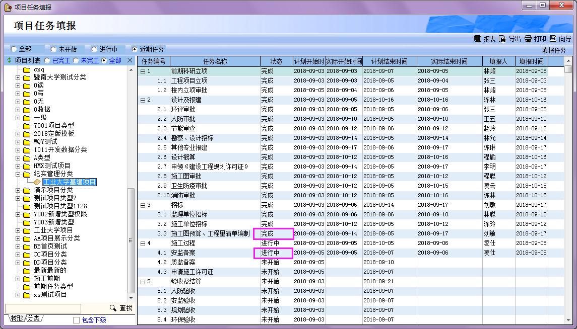 5. 任務(wù)填報后可以匯總到一個報表中,顯示當前進度;