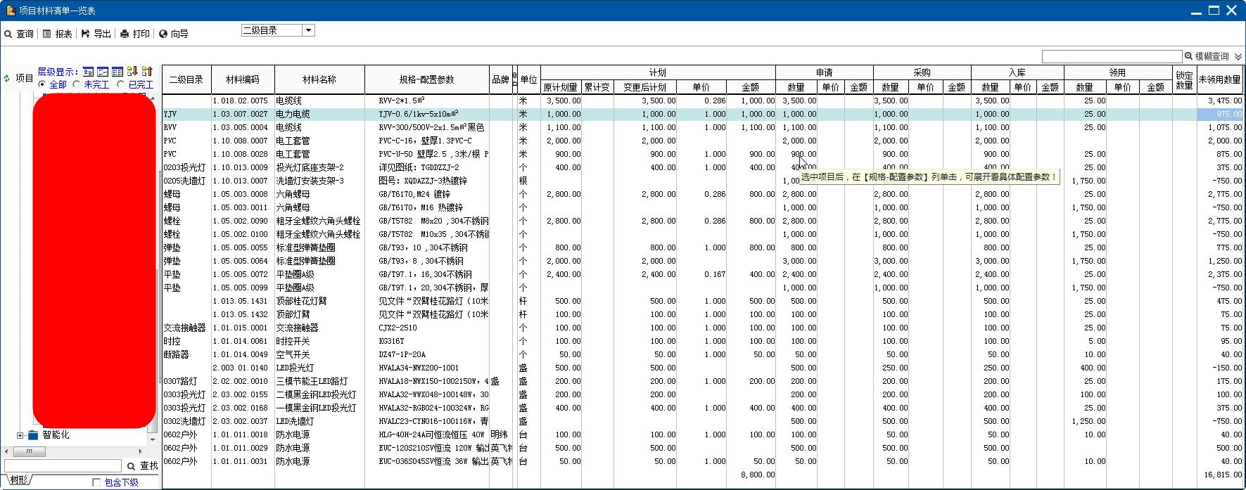◆ 任務(wù)材料計(jì)劃(從項(xiàng)目清單拆分明細(xì)生成)