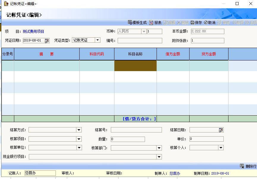 財務(wù)科目 | 借方 | 貸方 | 明細(xì)逐條 | 核算部門 | 核算個人 |