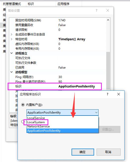 3、IIS应用池的标识�Q�改�?“LocalSystem”�?/p>
