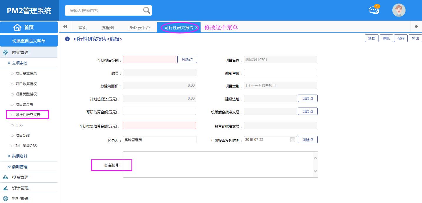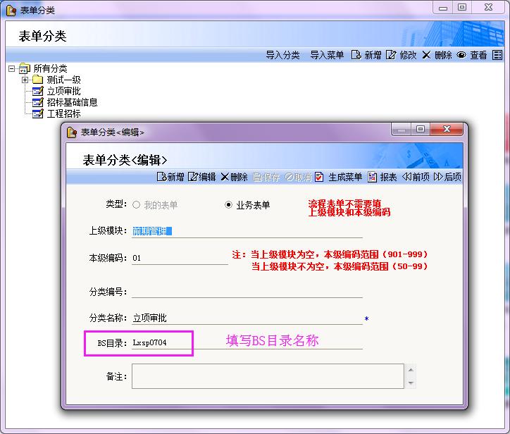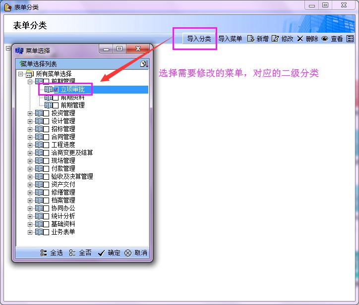 2、上囑֏�见该菜单在【前期管理——立��审扏V��分�c�M���Q�所以打开【业务表单——表单定义——表单分�c�R��菜单,如下所�C�勾选“立��审批”分�c�(备注�Q�若多个菜单属于同一分类�Q�则该分�c�d��入一�ơ即可)