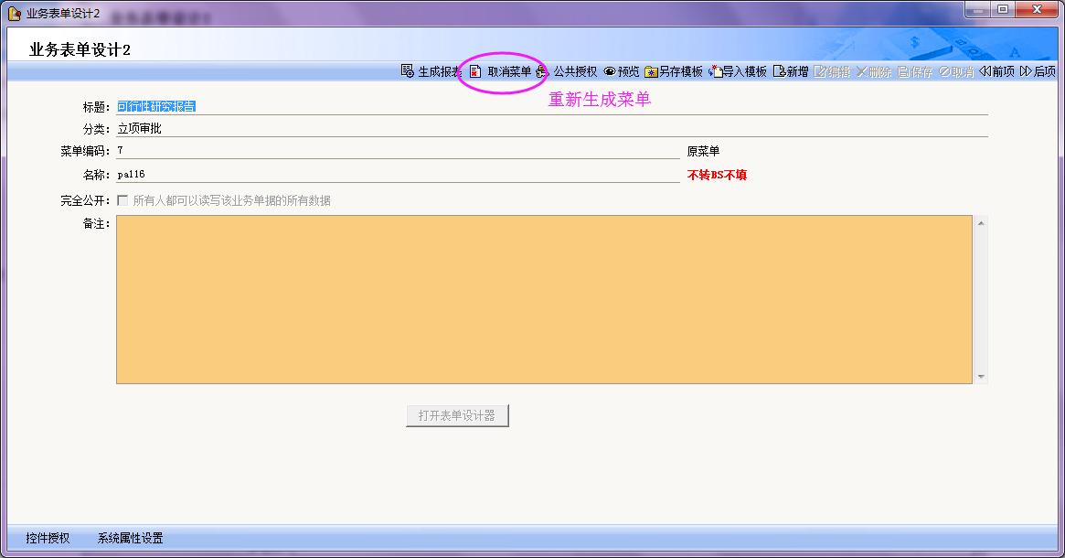 5、完成下载后�Q�可以在【业务表单——表单定义——业务表单设�?】菜单中修改菜单�?/span>