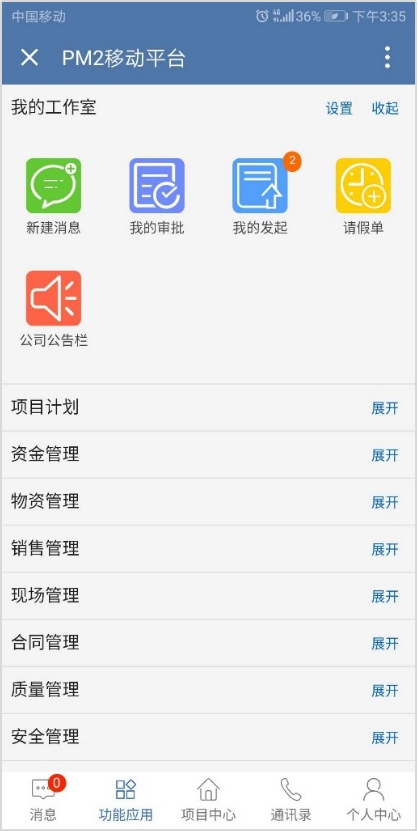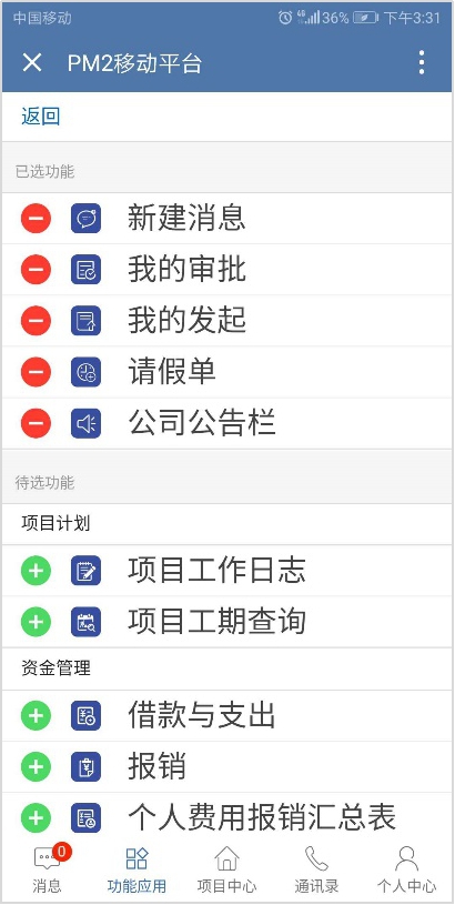 信息技术飞速发展的时代�Q�移动办公逐渐被广泛��用,用户可以不受地域、时间限�Ӟ��只要带上手机�Q�便可以随时随地�Q�及时处理工作事��V��PM2软�g��Z���l�用��h��供更加舒适便��L��无纸化办公模式,�q�一步开发移动端办公�E�序�Q�用户只需要关注所在企业的微信企业��P���l�过相关配置后,���可以通过微信或者企业微信APP�Q�进行请假销假申诗���报销、单据审扏V��收发消息、查看公告、�Q务填报,查看报表�{�操作,即���?sh��)脑不在�w�边�Q�也可以及时处理工作事务�?/p>