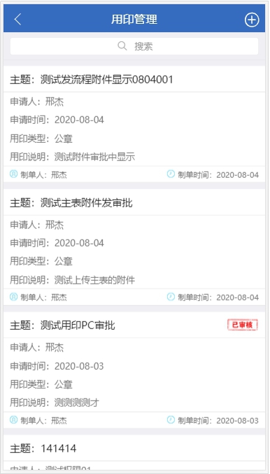 3、移动端的新增和发�v审批界面